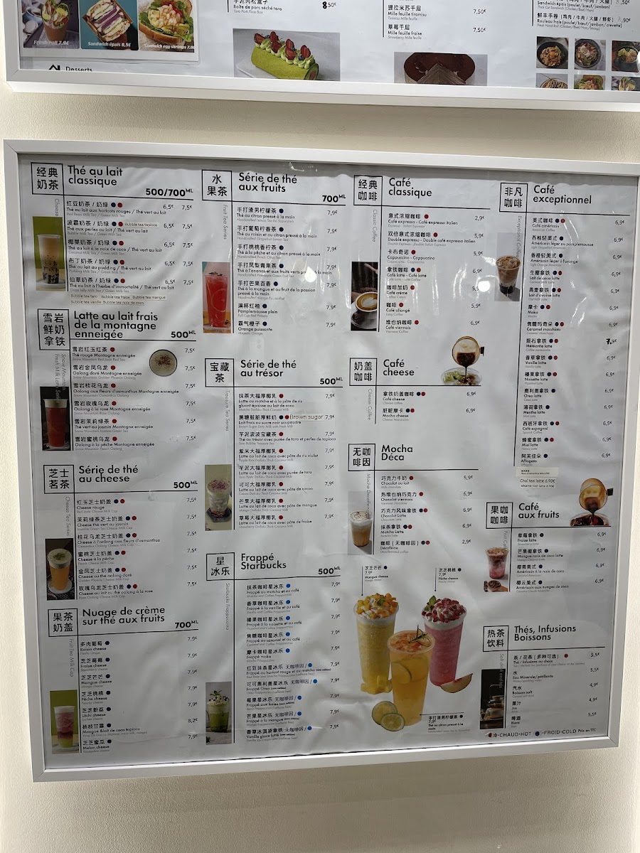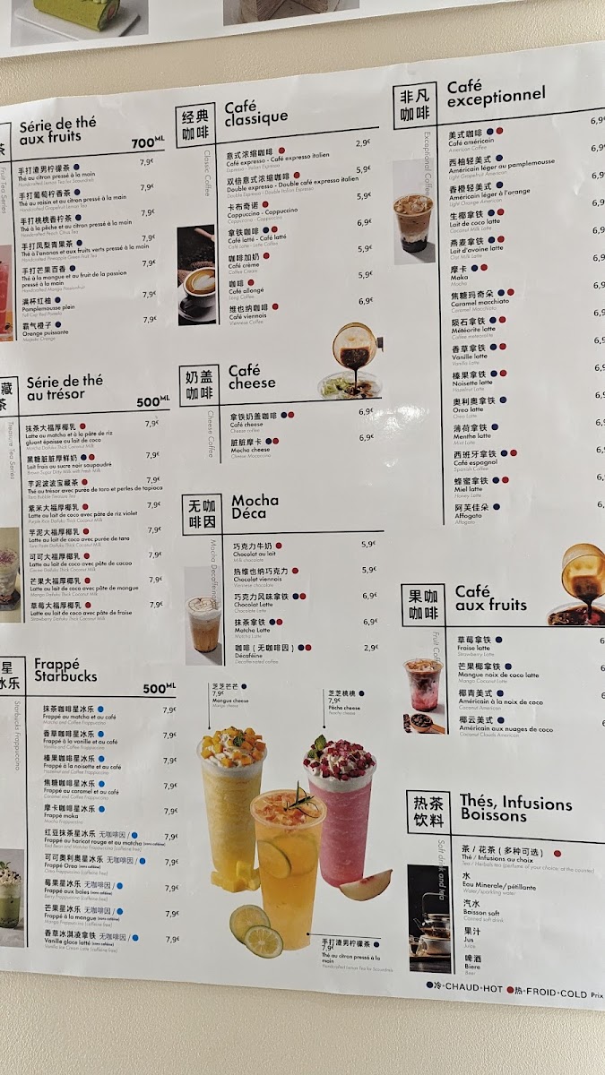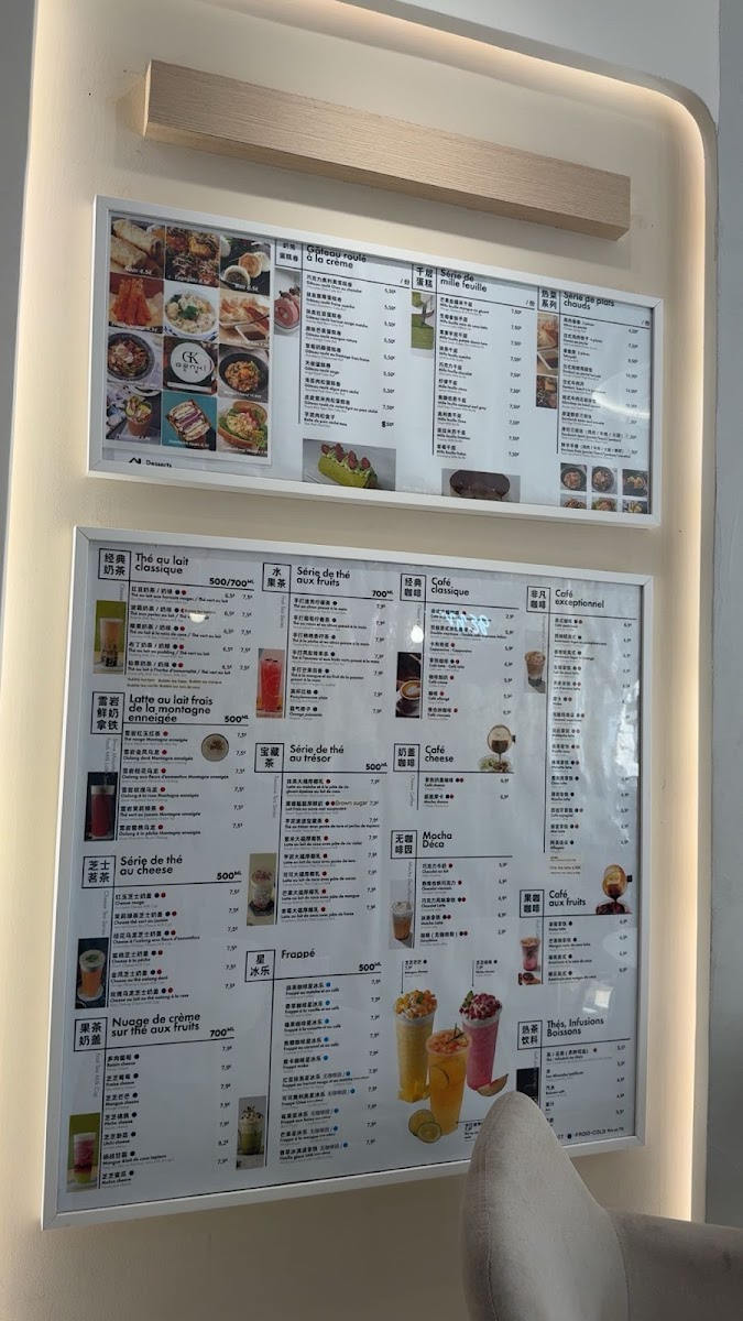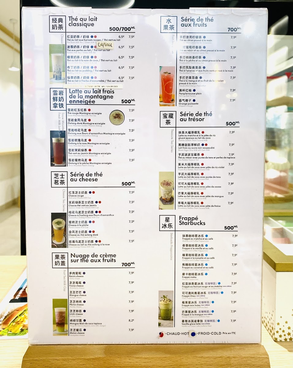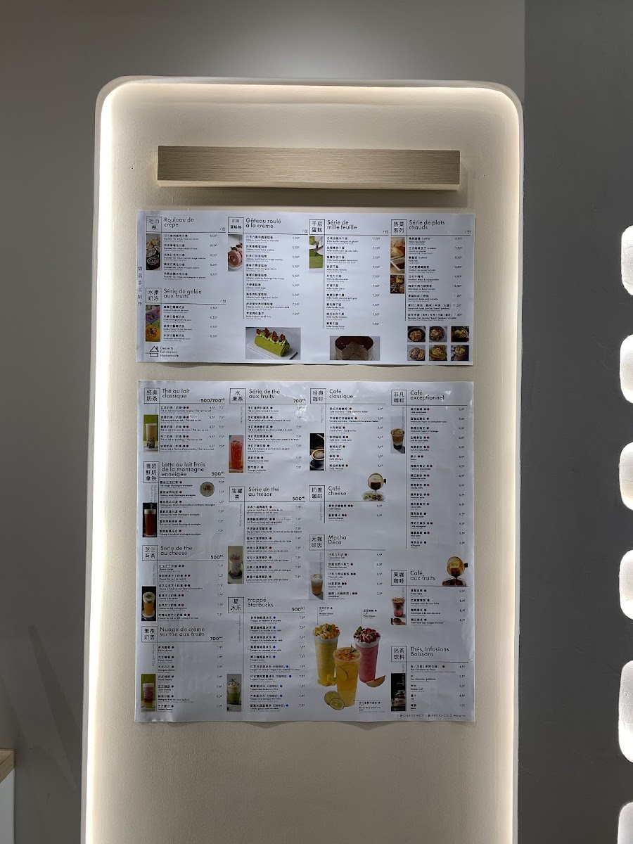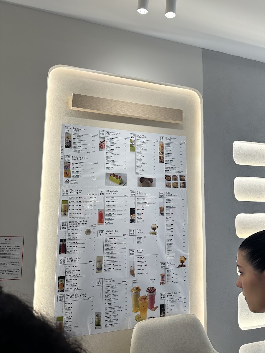 In addition to food, the menu features a range of tea-based beverages that complement the dessert and light meal offerings. These include specialty drinks like Thé Au Trésor Avec Purée de Taro Et Perles de Tapioca, suitable for tea breaks or casual dining.