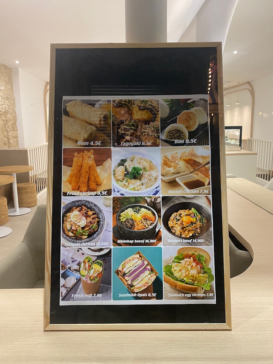 For light meals, the menu includes fresh rolls and sandwiches, including varieties such as Sandwich Fresh Roll and Sandwich Jambon, providing a balance between sweet and savory choices.